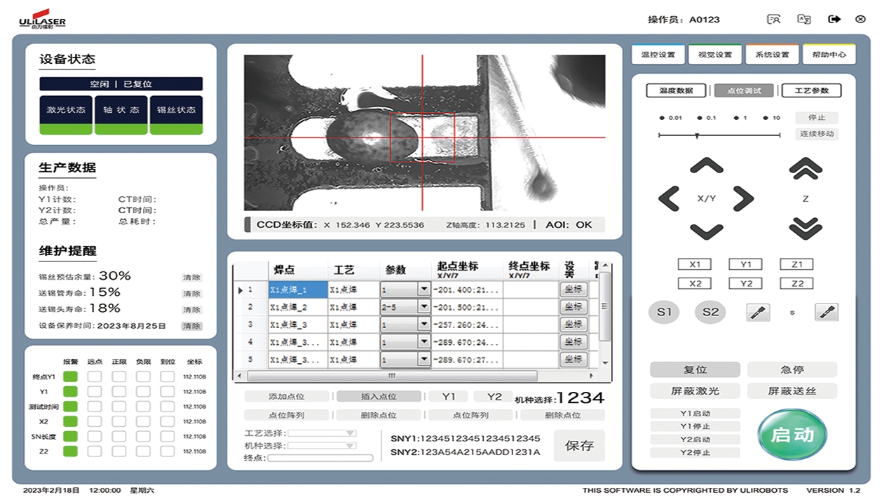 ULiROBOTS激光恒溫焊錫系統(tǒng),以滿足市場需求:包括直接半導(dǎo)體激光、紅外在線溫度計、恒溫單聚焦焊接頭、單聚焦循環(huán)照明光源、自動送絲系統(tǒng)和恒溫激光焊接軟件。這種模塊可以提前在焊接軟件中設(shè)置多個溫度范圍。焊接過程中,激光閉環(huán)溫度控制系統(tǒng)可以實時測量焊點的溫度。當(dāng)焊點溫度達到設(shè)定溫度上限時,激光功率會自動調(diào)節(jié)并降低,以防止焊點溫度過高造成熱損壞。它具有以下特點和優(yōu)點: